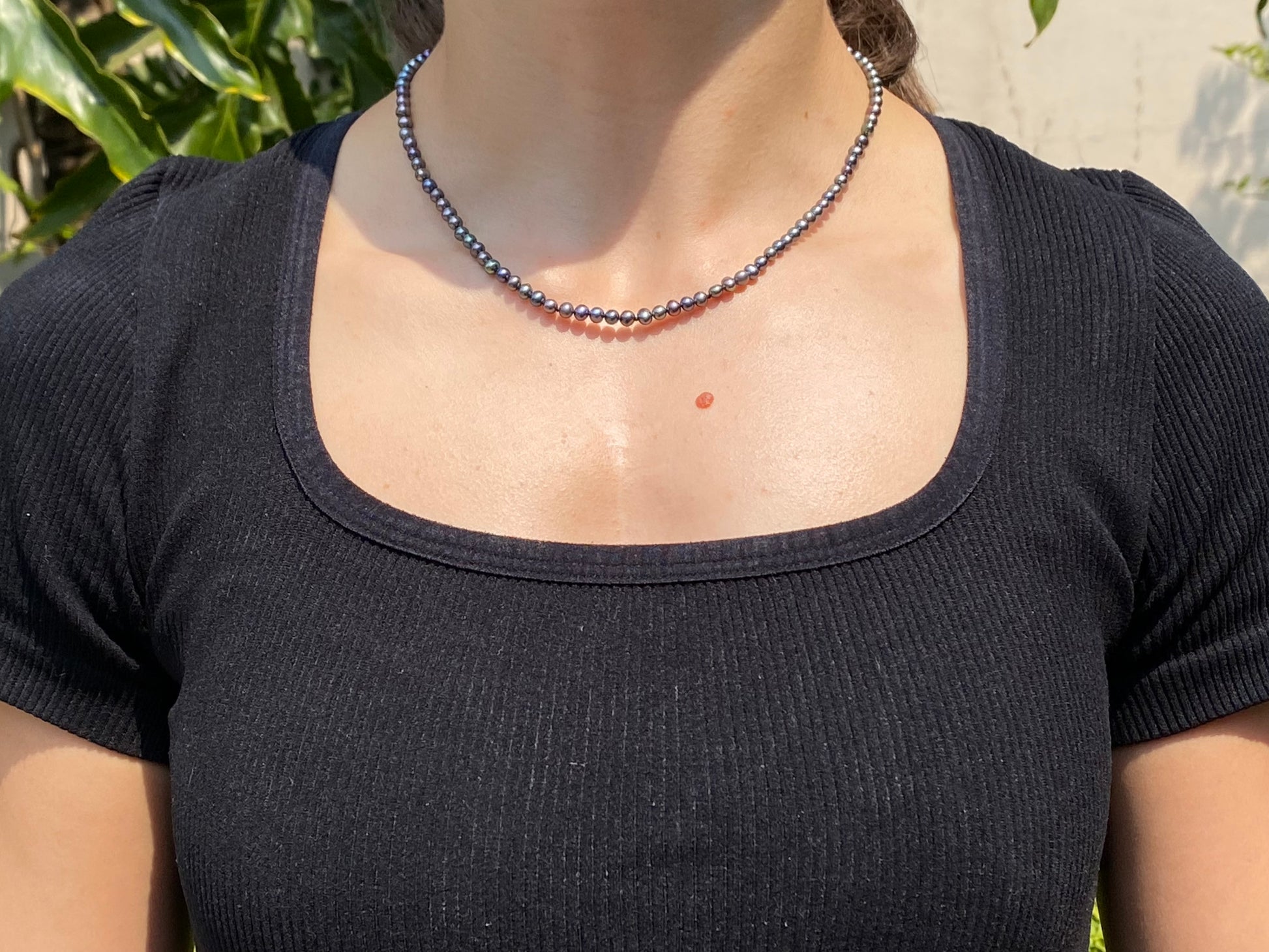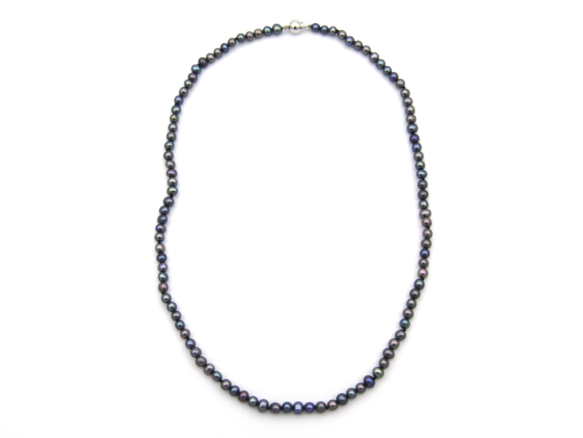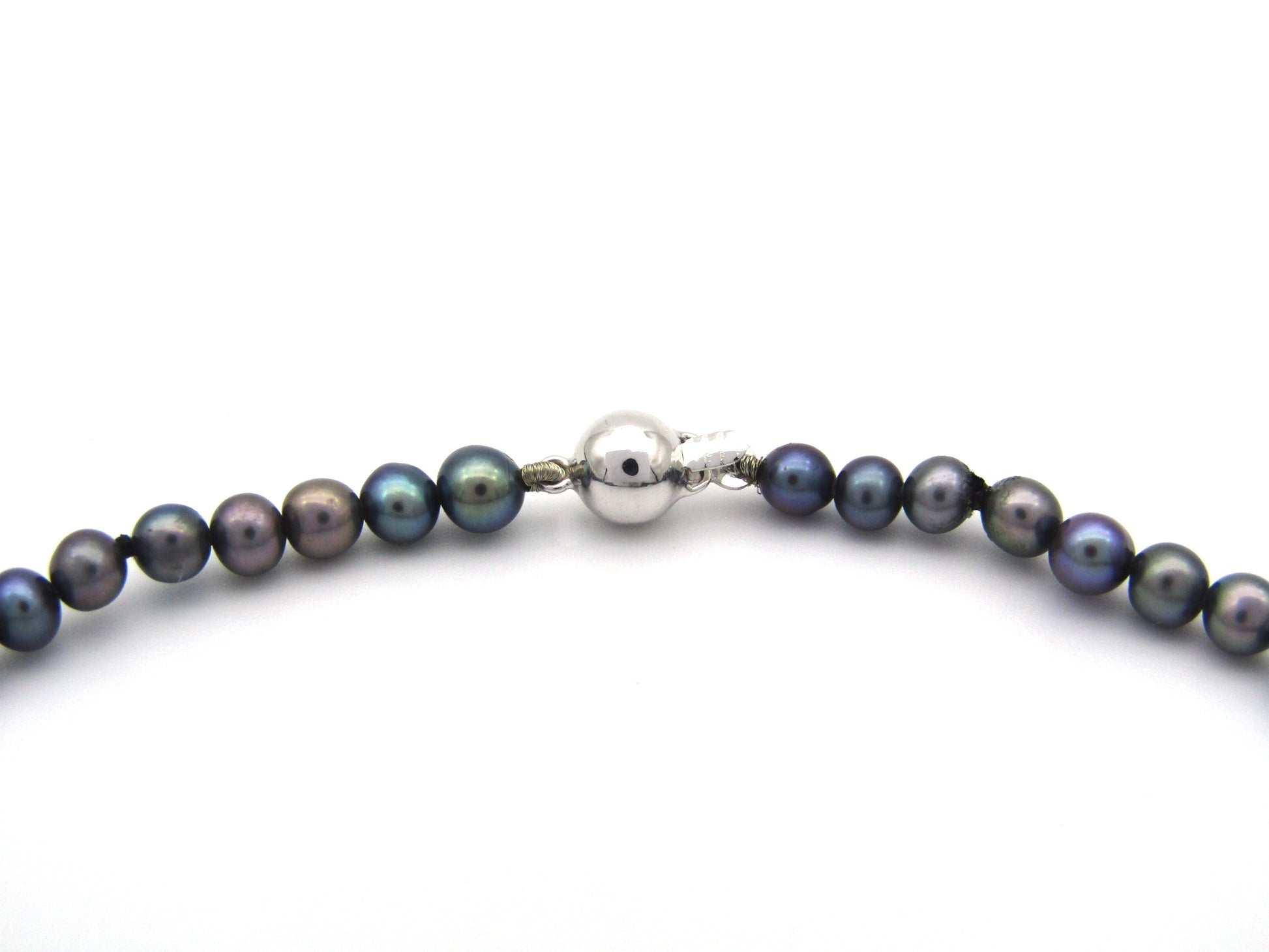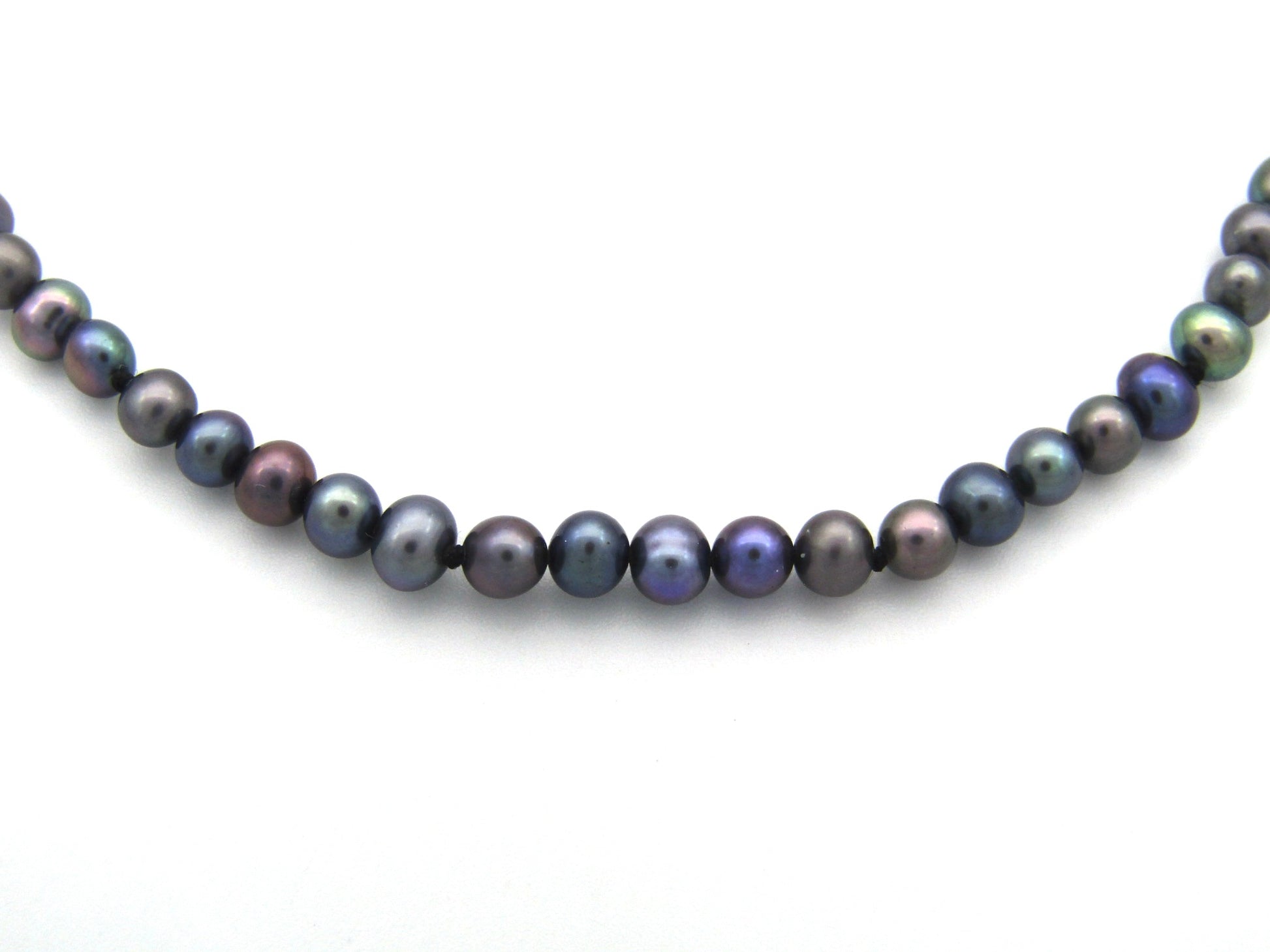 A delightful medley of aubergine, pistachio, peacock, rainbow, midnight blue, silver, and black pearls make for an interesting and fun strand of pearls. Made by Jack Friedman.