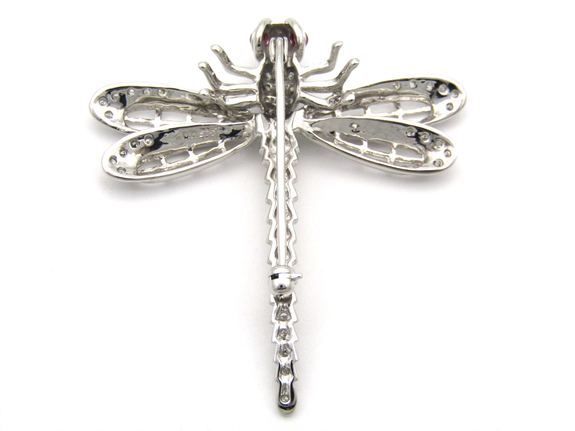 14K gold ruby and diamond dragonfly brooch, circa 1940's.