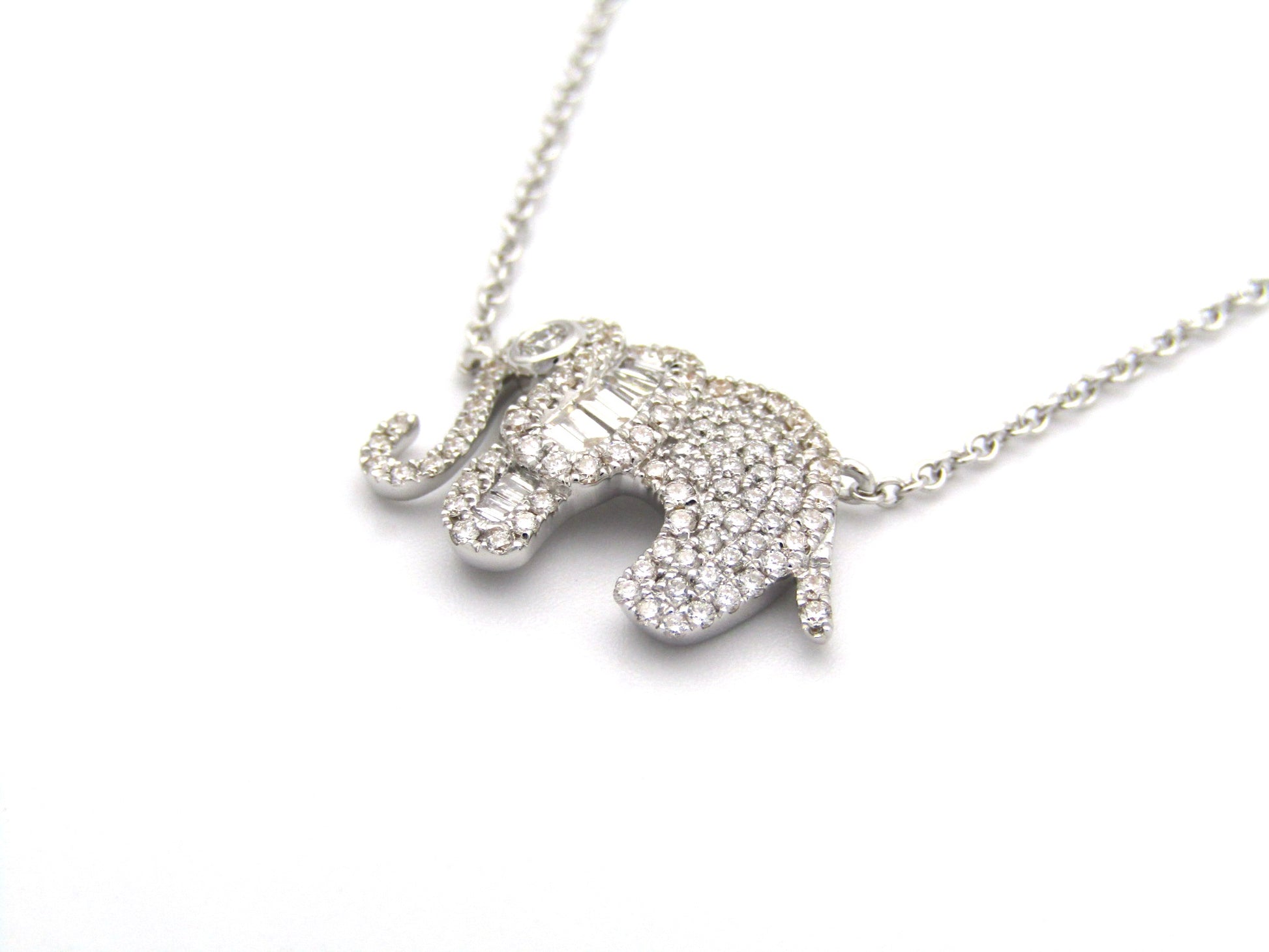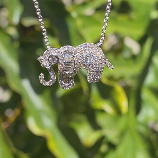 18K gold diamond elephant necklace.