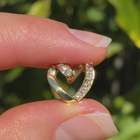 Diamonds and hearts are the perfect combination - truly! This beautiful heart has been crafted in 18K yellow gold with lobes that swirl in waves at the top and is set with bright and sparkling round brilliant cut diamonds. The cutest accent to any outfit! Made by Jack Friedman. (Chain is excluded and is used for illustrative purposes only).