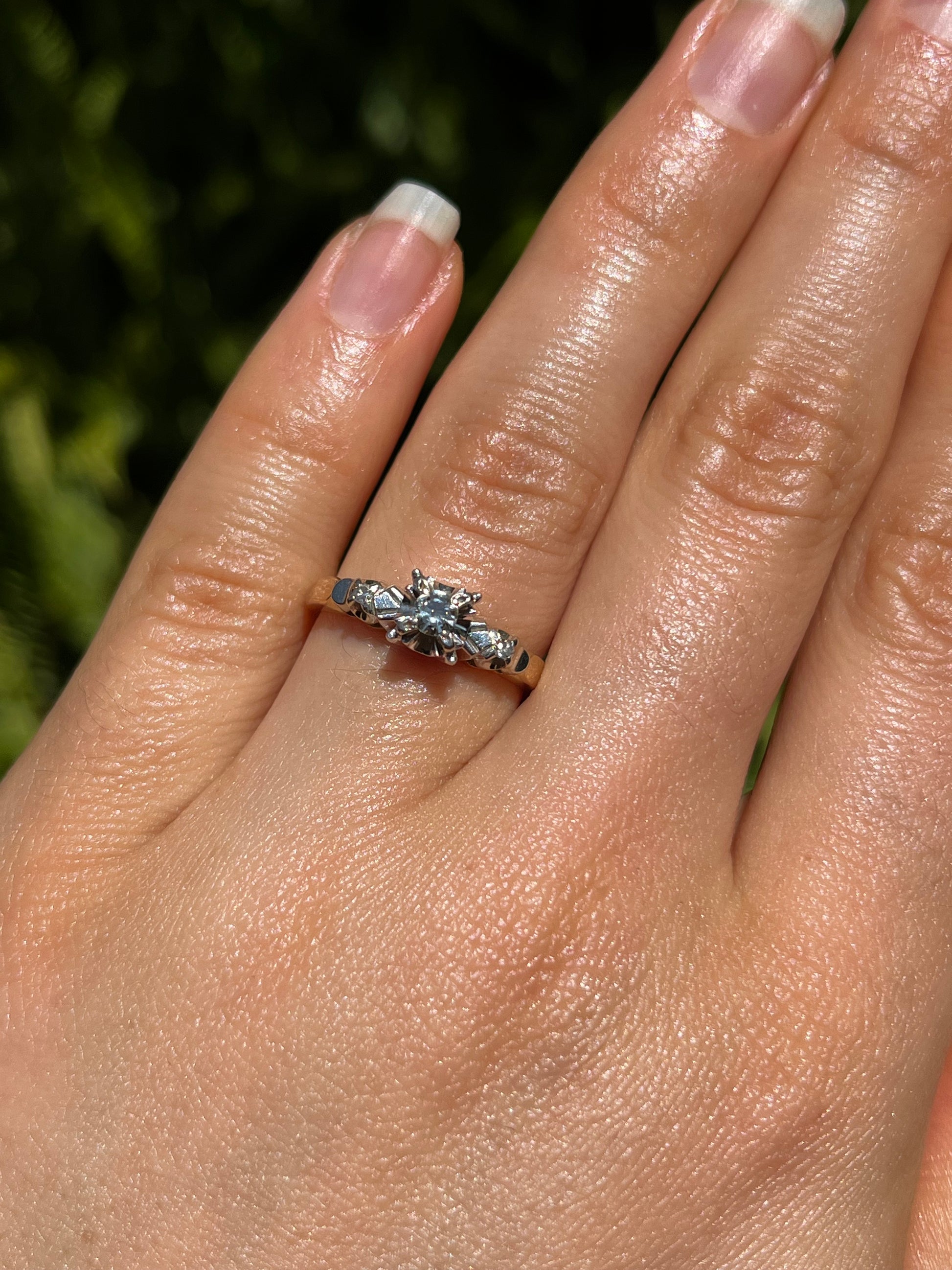 The contrast of metals highlights the diamond’s natural fire, while the craftsmanship tells a story of enduring love and fine tradition. Romantic and refined, this piece is not only a jewel but a keepsake of history — a perfect choice for those who cherish both beauty and meaning.