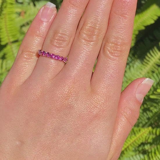 18K gold pink tourmaline half eternity ring.