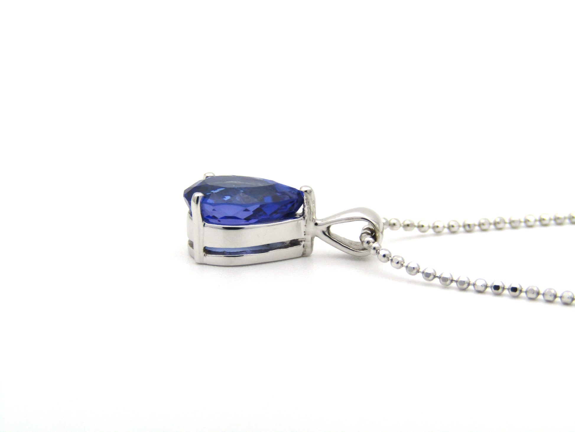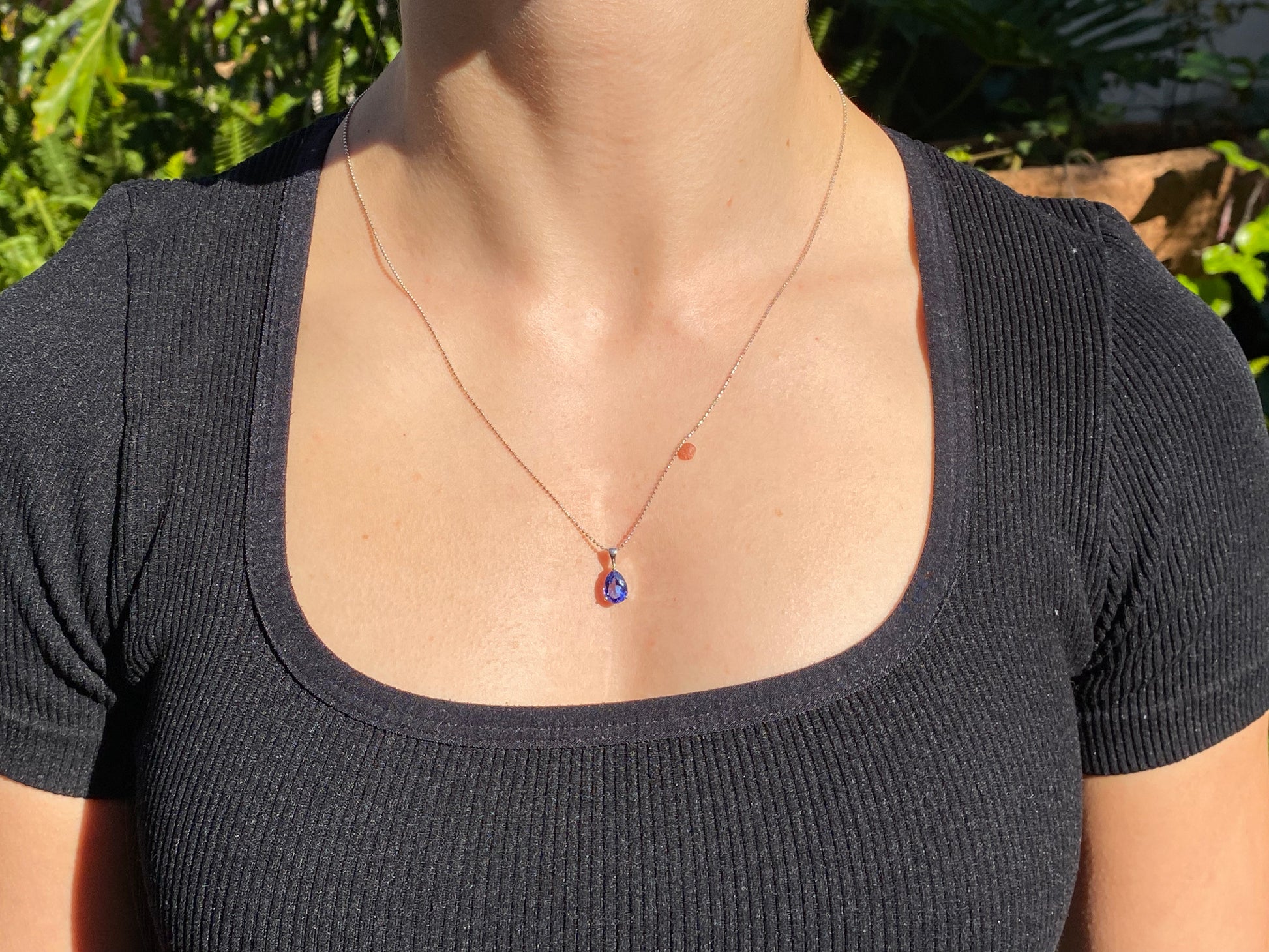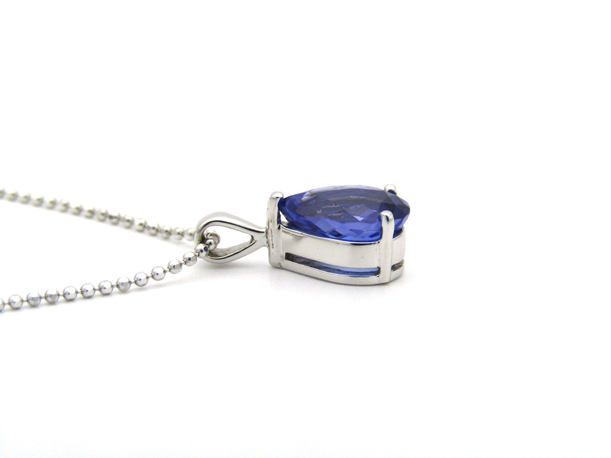Sometimes less is more - never more true than with this minimalistic pendant. A vivid pear-shaped tanzanite emits a deep navy-blue glow sitting gracefully on your neckline in polished 18K white gold, hanging from a classy 18K white gold ball chain. Simplistic, but elegant.