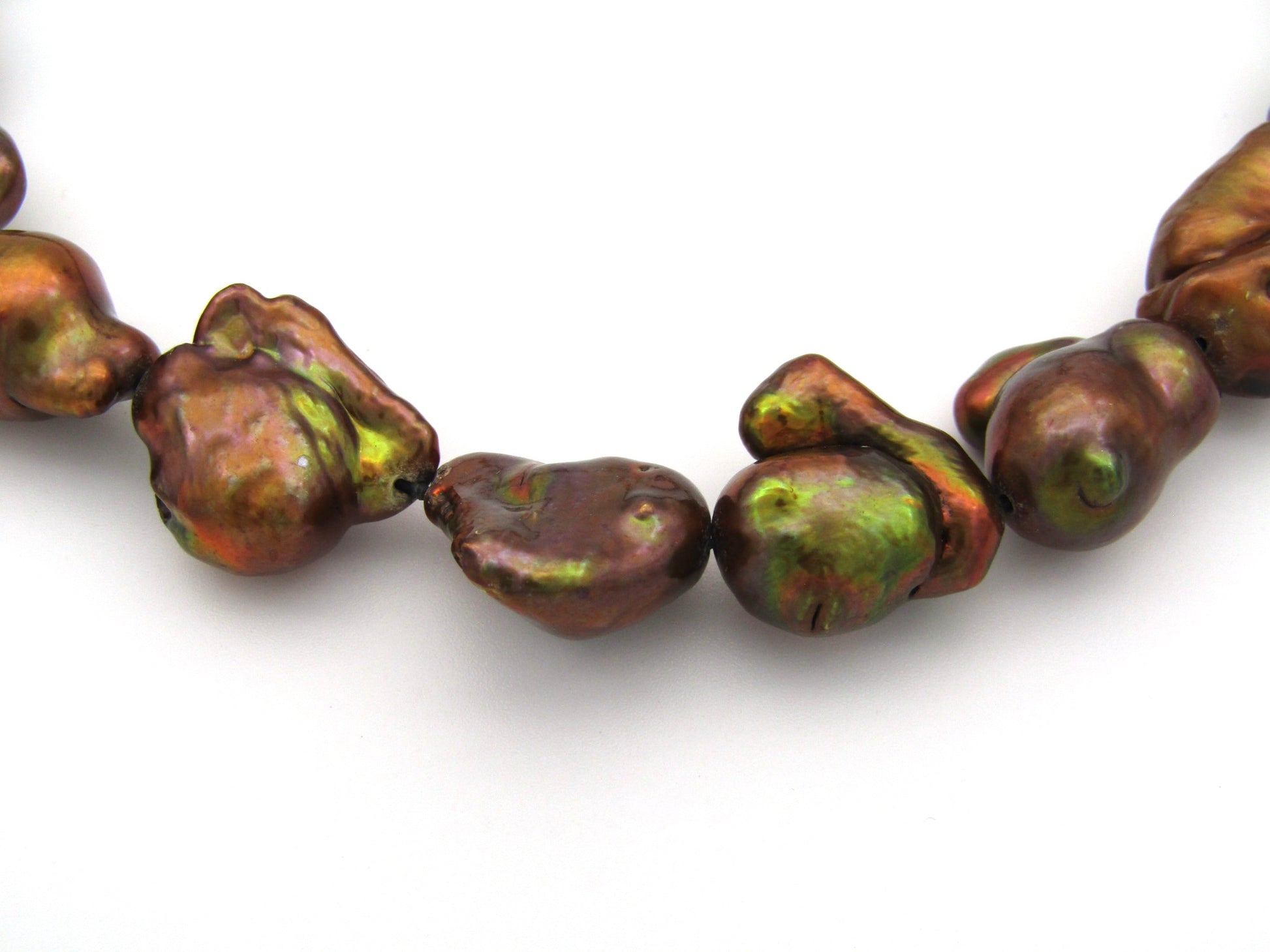 9K gold baroque pearl necklace.
