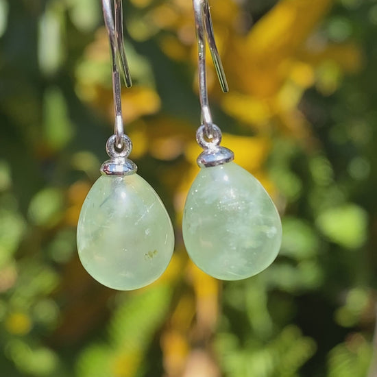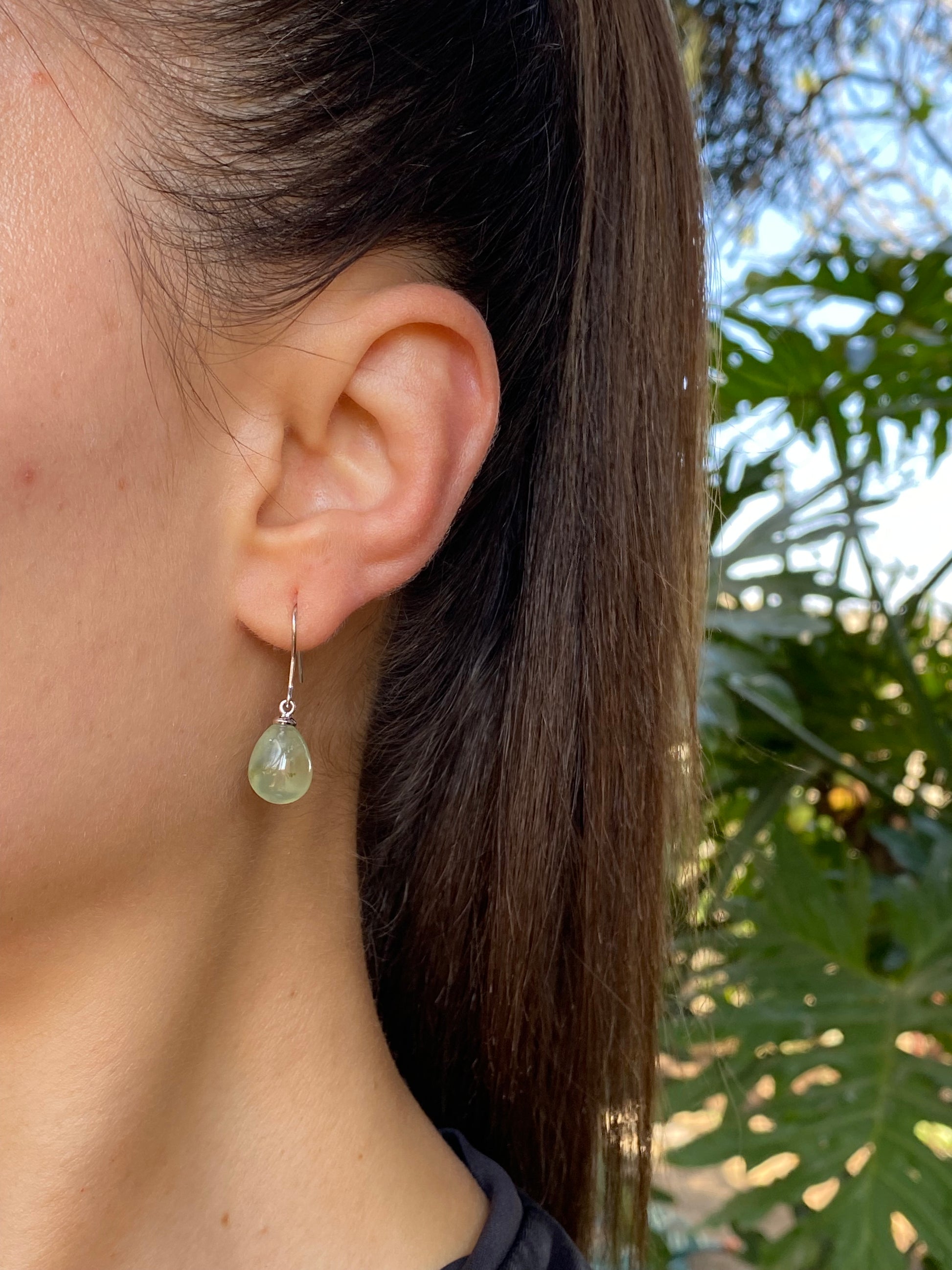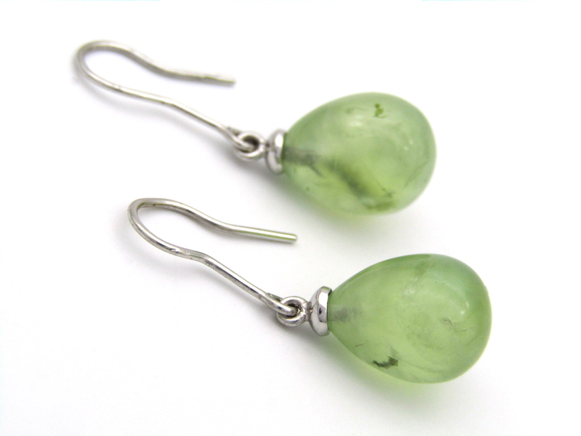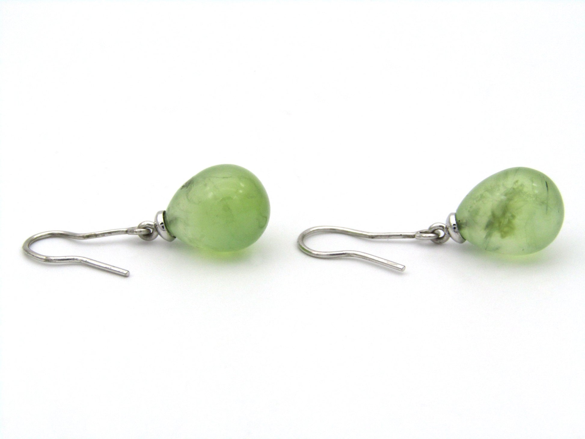These simple and fashionable earrings are each set with a pear-shaped apple green (yes, it's a mind boggle ;)) brazillianite, dangling deliciously from your lobes and attached to 9K white gold hooks. Time to have fun with an unusual stone, because who wants to be boring?!