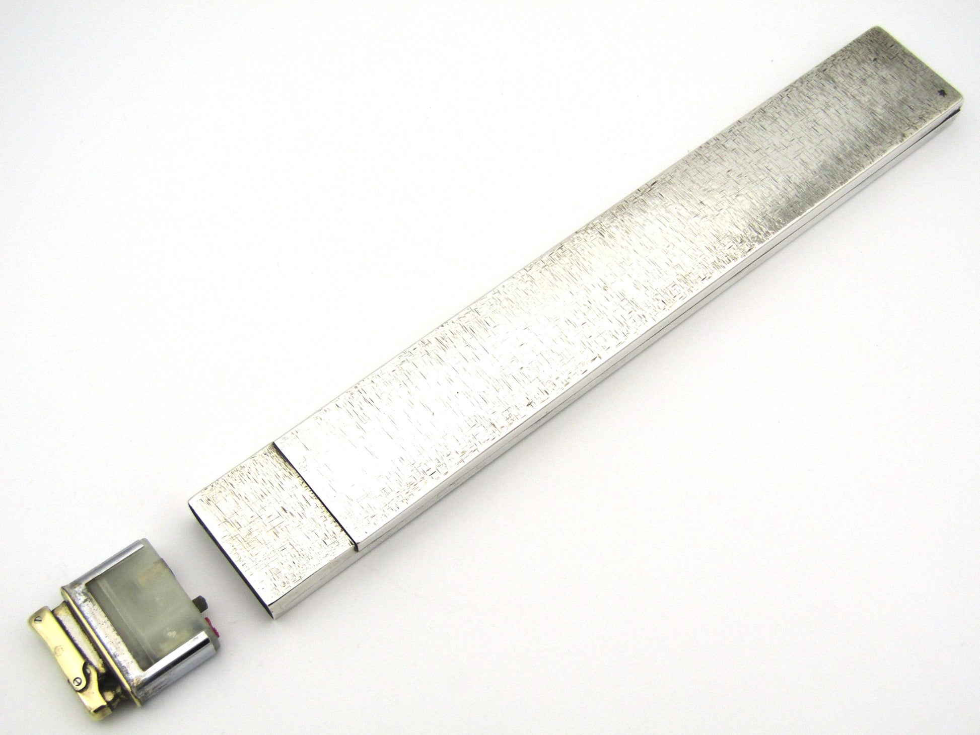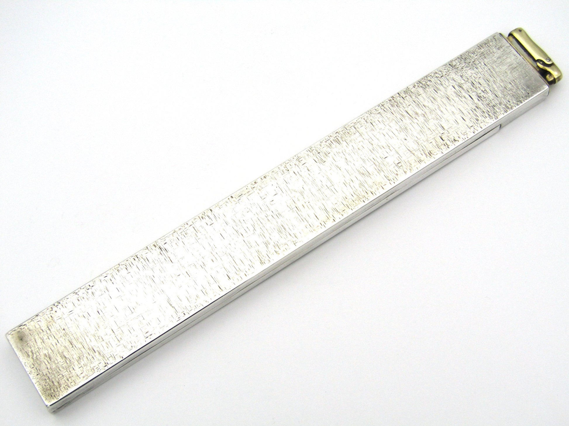 Class up your smoking with this impressive Italian silver cigarette case with removable lighter in the Hollywood Regency style. Hand engraved lines add character to the exterior, and a gold gilded interior make for a very luxurious smoking experience. A removable lighter means that you can still use this classy piece today. Commissioned by Mr. Debenedetti at the family goldsmith in Italy in the 1940's.