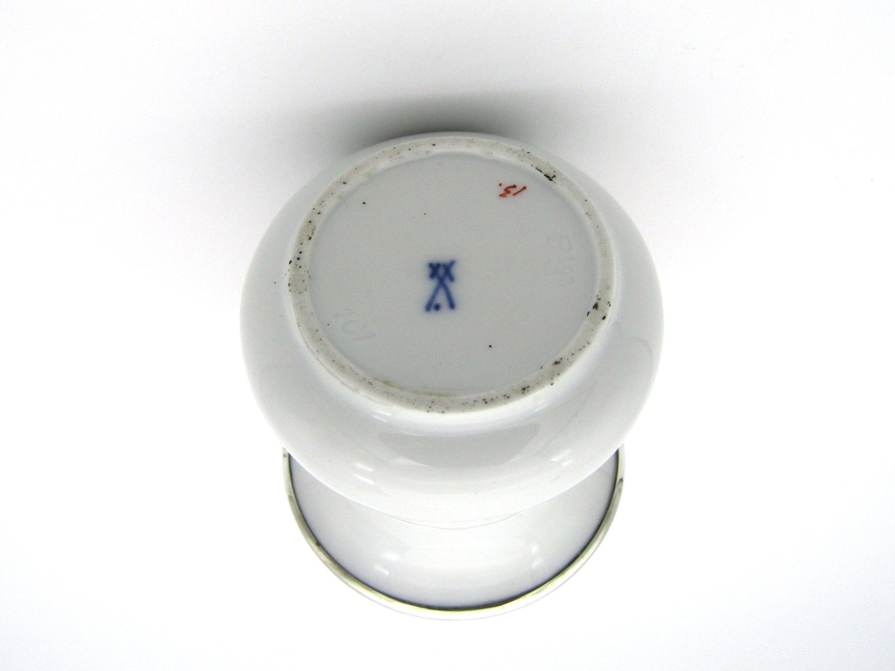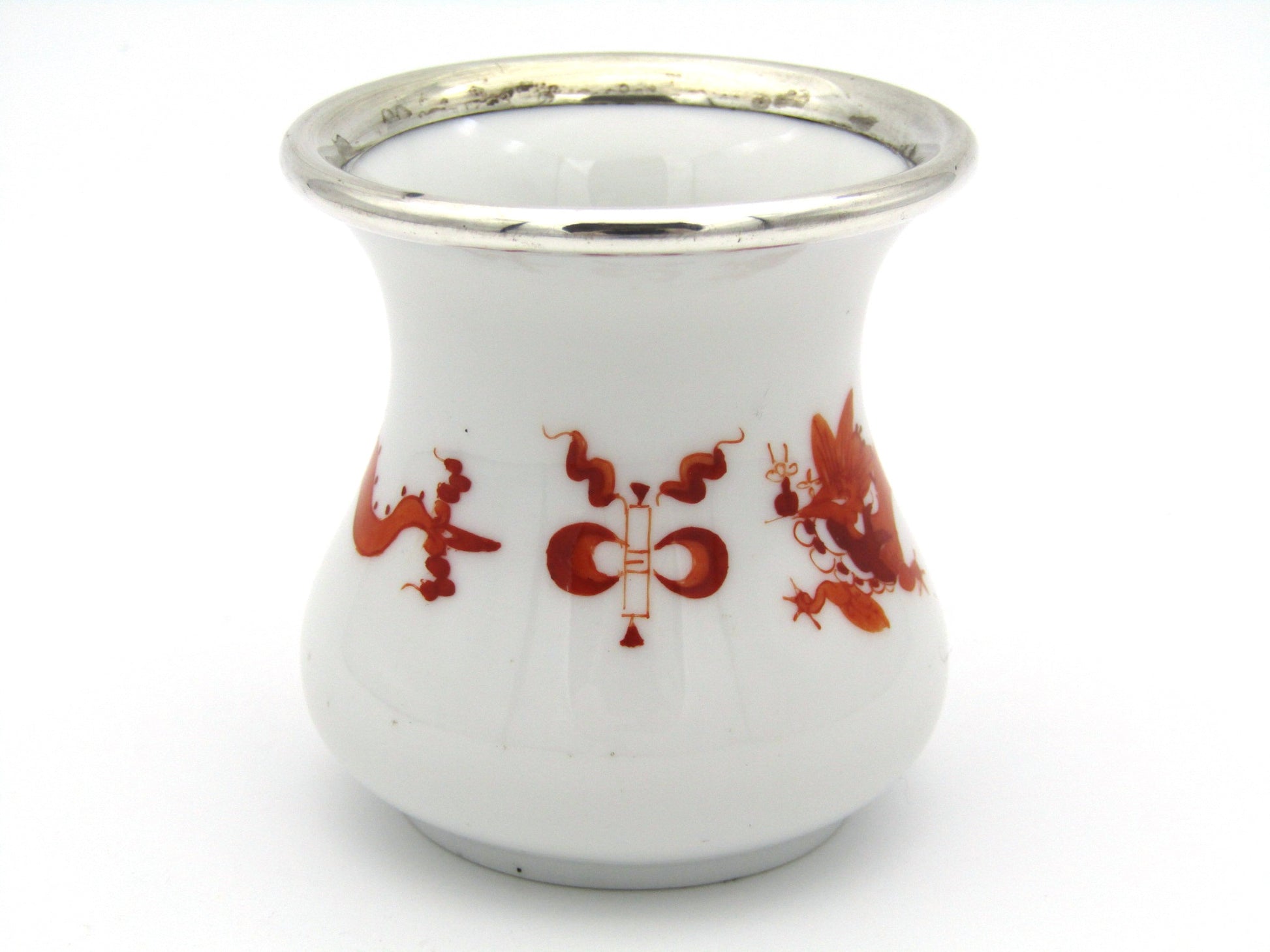 Meissen red dragon bud vase with silver mount.